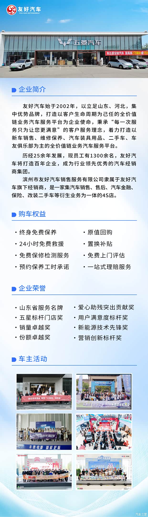 德州天衢一汽丰田汽车公园店成立于2006年12月30日,是丰田特约4S维修服务中心,具有“整车销售、配件供应、维修服务、信息反馈”功能的一汽丰田汽车4S店,是一汽丰田全国最优秀的经销店之一。主要销售系列国产丰田汽车,包括:威驰、威驰FS、卡罗拉、卡罗拉双擎、卡罗拉双擎E 、荣放、奕泽、亚洲龙、皇冠、普拉多、柯斯达等车型。公司依托友好汽车强大的实力背景和卓越的品牌形象,作为友好公司综合后服务体系的一个触点,为客户提供值得信赖的、全面的、一流的超值服务。