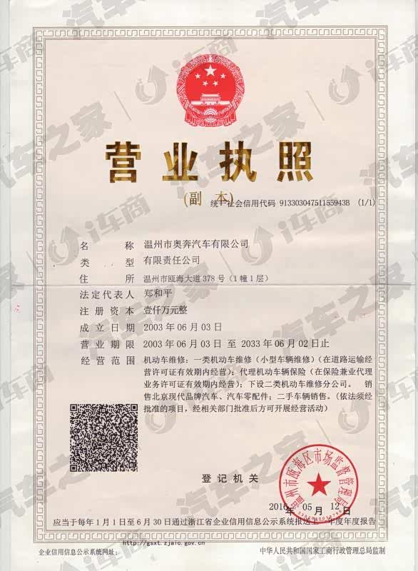 温州市奥奔汽车有限公司成立于2003年6月,注册资金1000万元。是一家致力于乘用车销售、服务领域的专业营销公司。