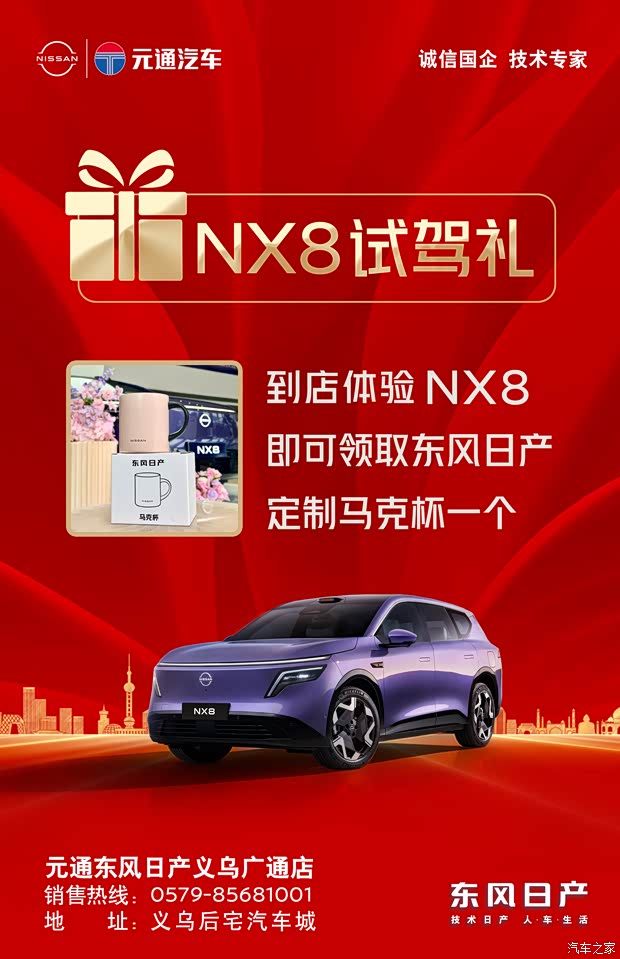 元通东风日产义乌广通店2026-04-08 11:11 · 金华 NX8到店试驾有礼啦!