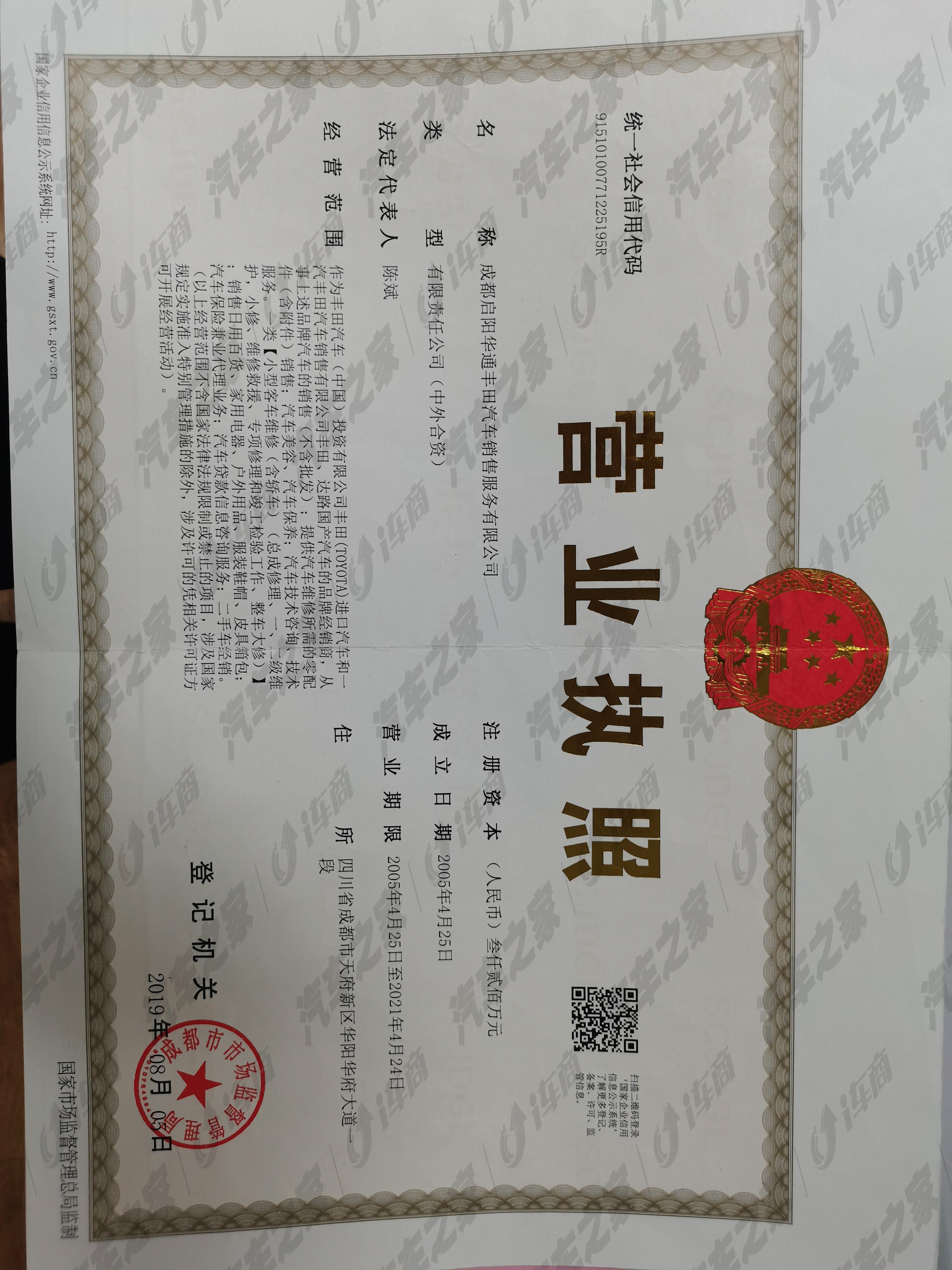 成都启阳华通丰田汽车销售服务有限公司
