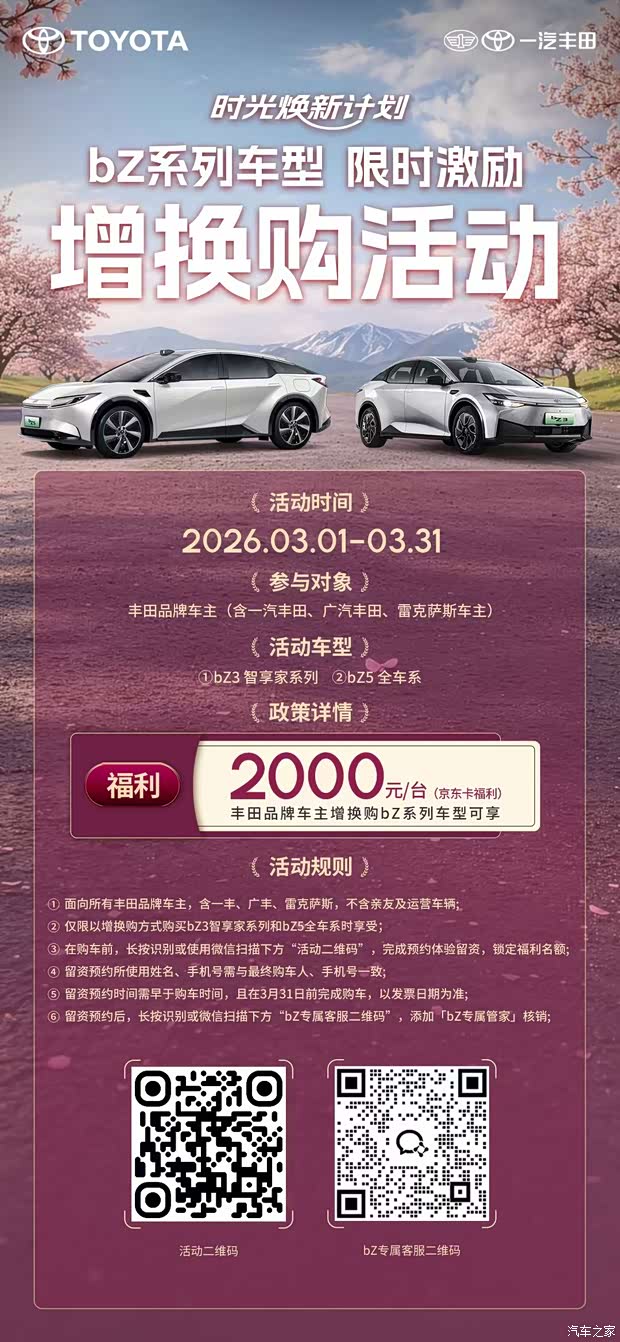3月1日-31日增换购bZ系列 立享2000元京东卡福利