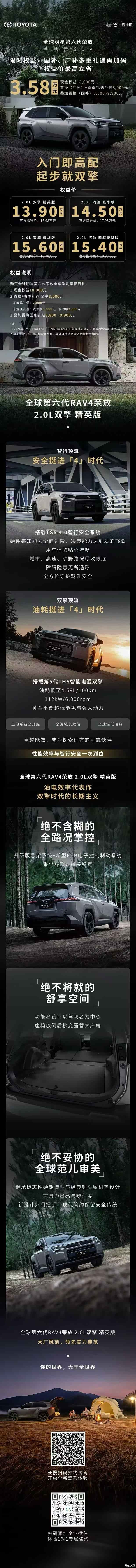 全球第六代RAV4荣放 2.0L双擎精英 版火热交付中!