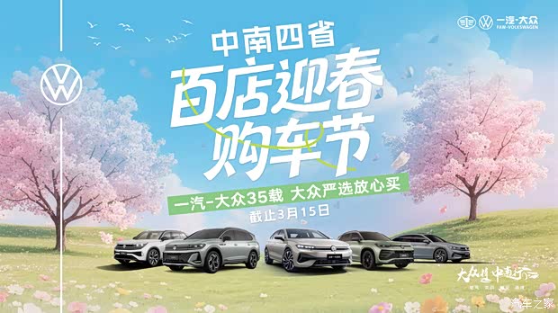 一汽 - 大众百店迎春购车节以诚意政策致敬每一份热爱,活动至3 月 15 日截止,所有补贴、福利到期即止。