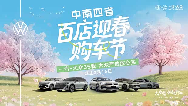 春风启新程,购车享好礼!一汽 - 大众百店迎春购车节现已全面升级,以多重诚意福利回馈广大用户,活动持续至2026 年 3 月 15 日,错过再等一年!本次购车节覆盖多款热门车型,从家用代步到商务出行、全家出游均有专属优惠,以 “宠粉、省钱、省心” 为核心,让每一位用户都能轻松焕新座驾,悦享品质出行。
