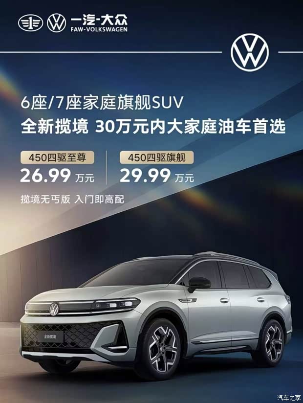 揽境无丐版 入门即高配,全新揽境26.99万元起售6/7座同价,30万内大家庭油车首选。