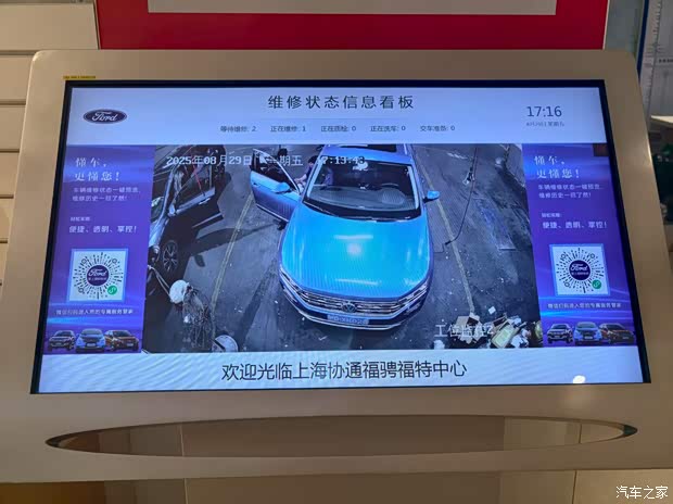 专业服务人员热情周到,提供咖啡、午餐、汽车资讯等,并及时通过电子显示屏更新车辆维修进度