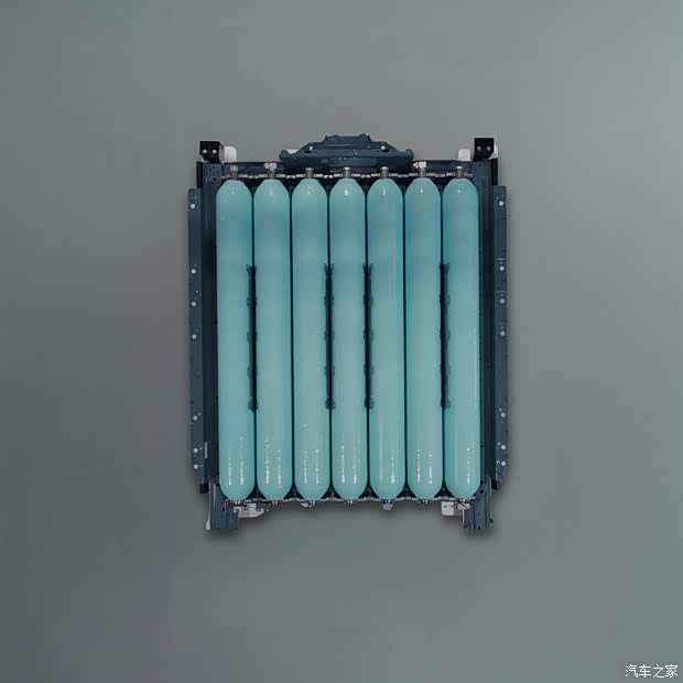 全新的BMW 氢能扁平化储存系统由七个高压碳纤维复合材料储氢罐组成,这些储氢罐以并联方式集成在坚固的金属框架中。其创新技术在于:系统并非采用多个独立压力容器,而是通过相互连通的7个腔体构成一个封闭整体,并由中央主阀统一控制。另外,700巴(bar) 高压储氢罐同时受益于车身结构所提供的机械防护,进一步提升了整体安全性。