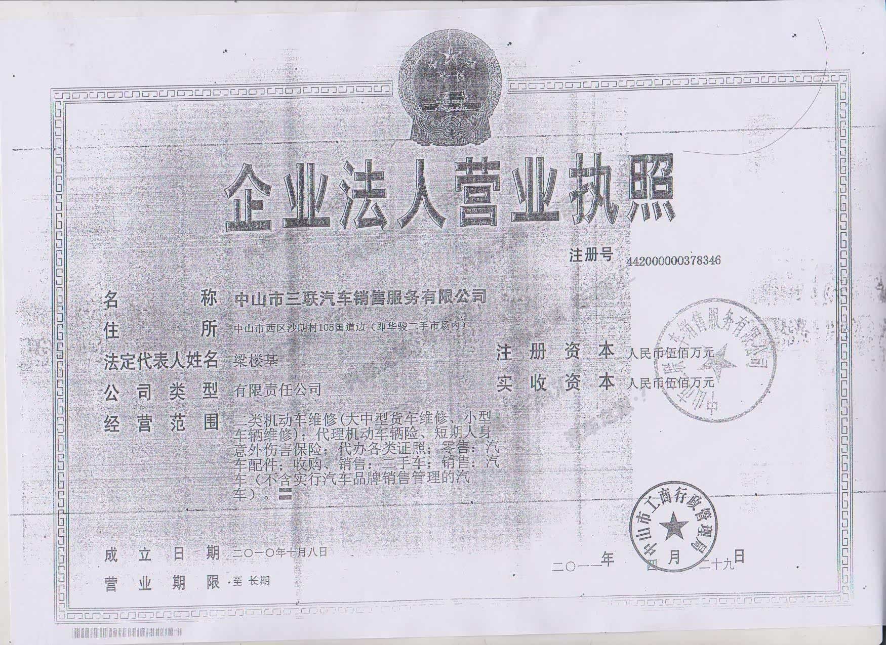 中山市三联汽车销售服务有限公司