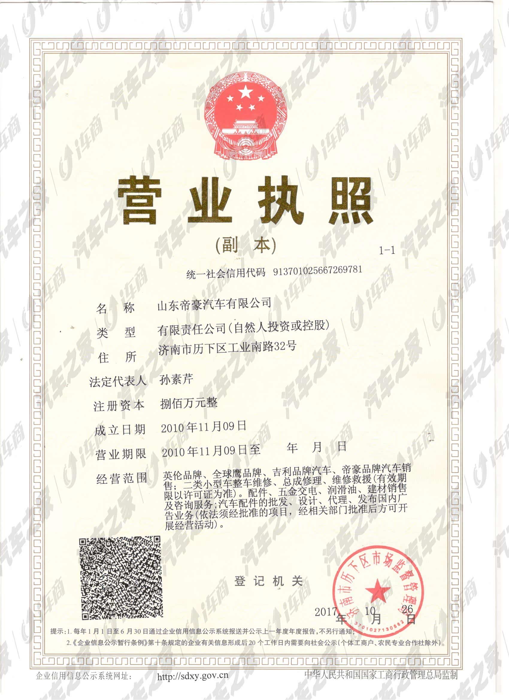 吉利汽车山东帝豪工业北路店