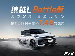 11月15日,吉利缤越L正式发布Battle版正式上市,四款车型的官方售价为8.48-9.78万元,先享价为7.48-8.78万元。
