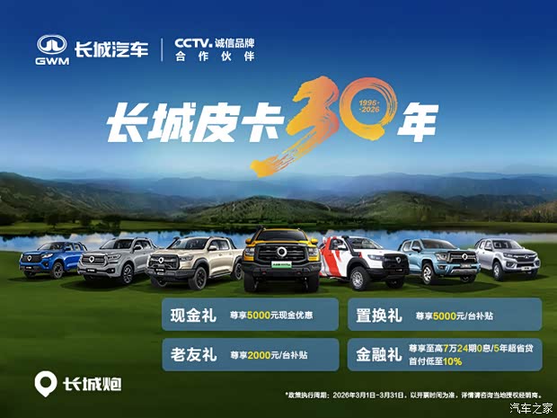 *老友礼:长城旗下车型及任意品牌皮卡车型增购/换购可享3000元/台购车补贴,可与置换补贴同享;