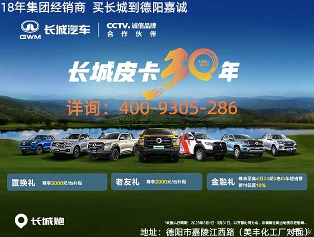 【6】服务礼:长城炮全系发动机/变速器享受 4 年或 10 万公里质保(先到为准)