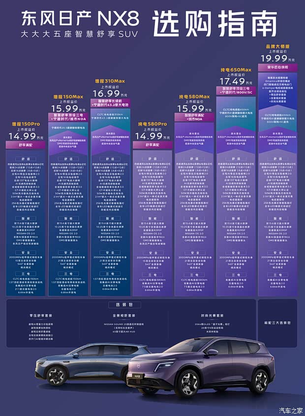 #大大大五座智慧舒享SUV #东风日产NX8 正式上市 #东风日产NX8限时权益价14.99-19.99万元 2大动力,7种版型 71项全系标配,标配即满配 一图看懂轻松Get! 欢迎您带家人一起到店体验~