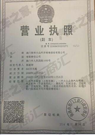 江苏南通海门市人民西路1688号(三和汽车广场内)