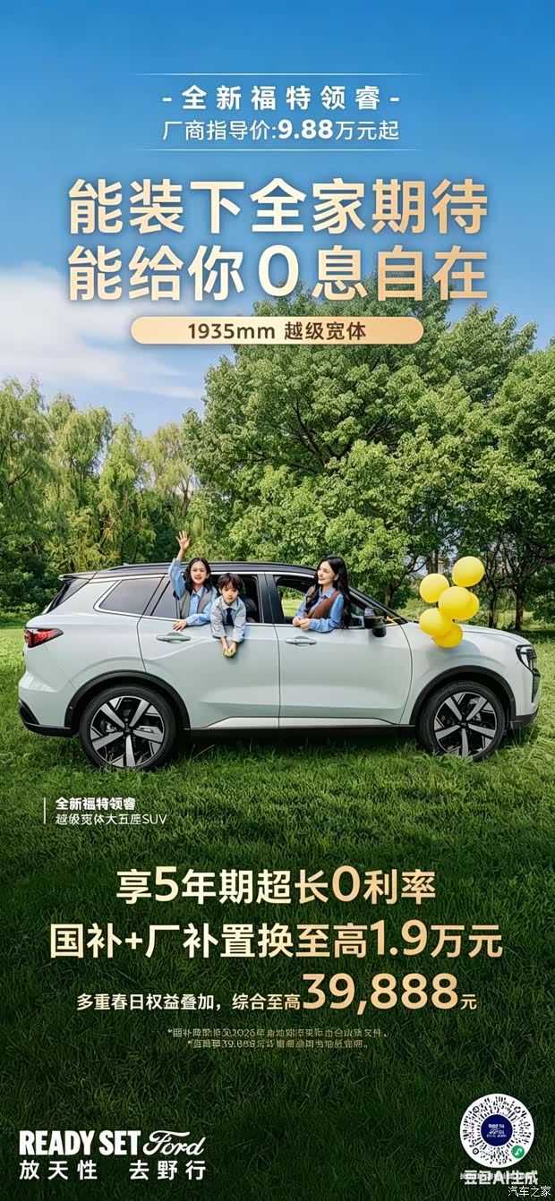 福特领睿五年 0 息 国补厂补至高 1.9 万
