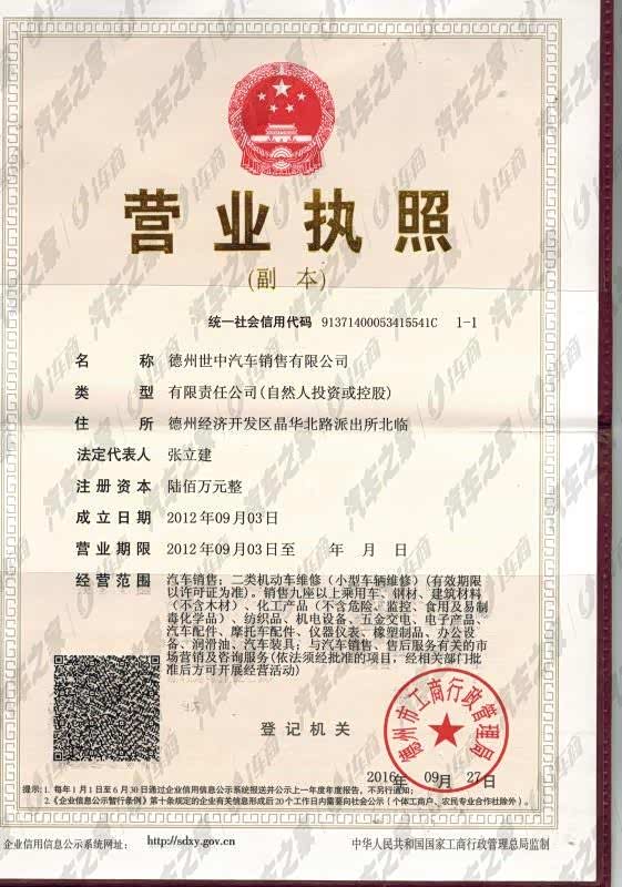 德州世中汽车销售有限公司是按照吉利厂家,最新4S店标准建立的集整车销售、售后服务、零配件供应、信息反馈等功能于一体的4S店。德州世中汽车销售有限公司成立于2011年,公司的服务功能涵盖新车销售、汽车维修、零配件销售、二手车交易、汽车置换、保险代理等各领域,满足汽车客户全程的消费需求。实施一对一式全程销售服务:销售顾问从顾客接待、车辆介绍与洽谈、车辆演示、车辆选购、开票收款、交车和办理临牌到售后回访均实施一对一的全程服务。
