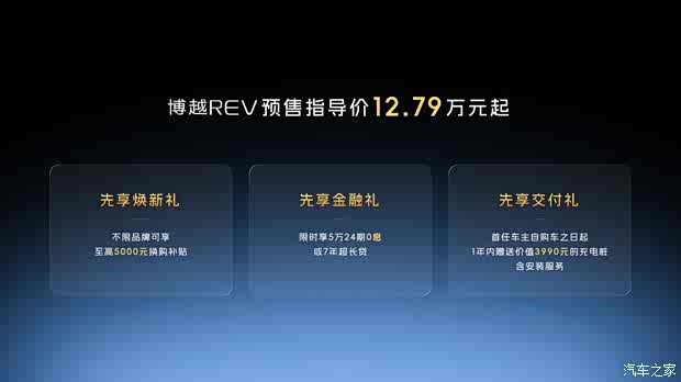 为让更多用户享受到长续航增程带来的有电更省、没电无忧、长途不虚,一步到位解决全场景出行焦虑,博越REV推出多项直击用户需求的预售权益: