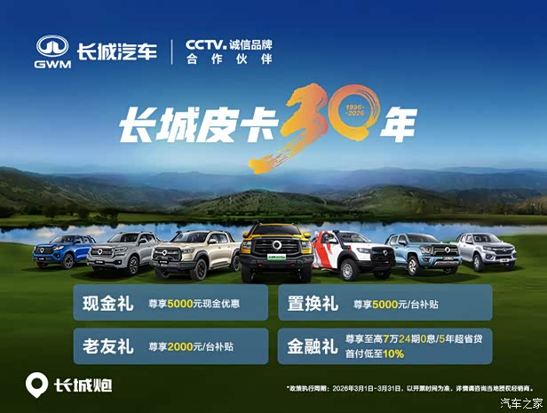 | 2026款 2.0T自动8AT汽油四驱精英型长箱 | 10.28万 | 1.20万 | 11.48万 | 询价 |