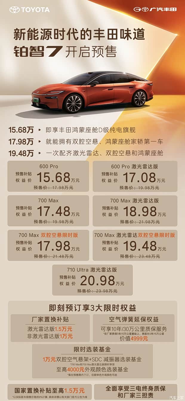 15.68万元即享丰田鸿蒙座舱D级纯电旗舰