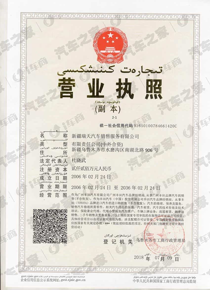 - 新疆瑞天是广汽丰田全国十佳经销商,