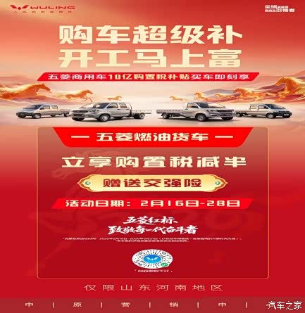 机会难得,补贴限时,先到先得。选五菱燃油货车,享购置税减半,搭上10亿补贴快车,2026开工即冲刺,致富更轻松!