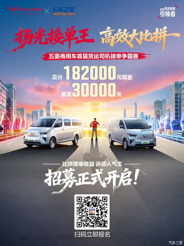 单人最高奖金30000元!五菱商用车首届货运司机接单争霸赛正式开启招募,货运行家请上场,182000元奖金池等你来瓜分!#扬光接单王高效大比拼 #扬光接单王