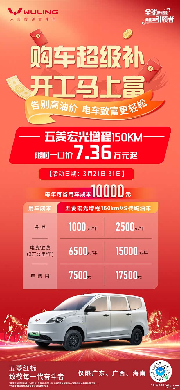 购车超级补 开工马上富新能源限时一口价宏光增程150KM7.36万元起