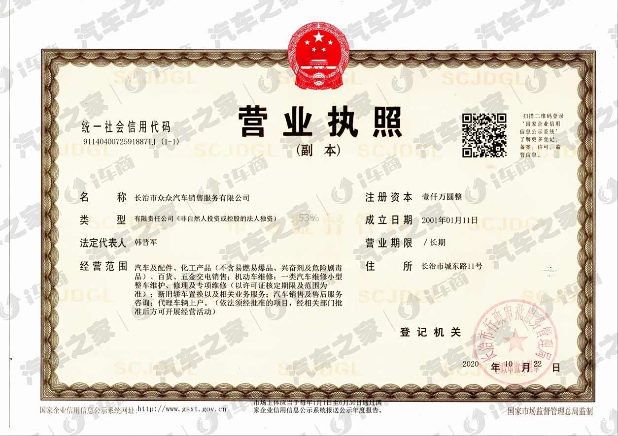 【1】、上汽大众斯柯达联营经销商长治众众4S店经销商!