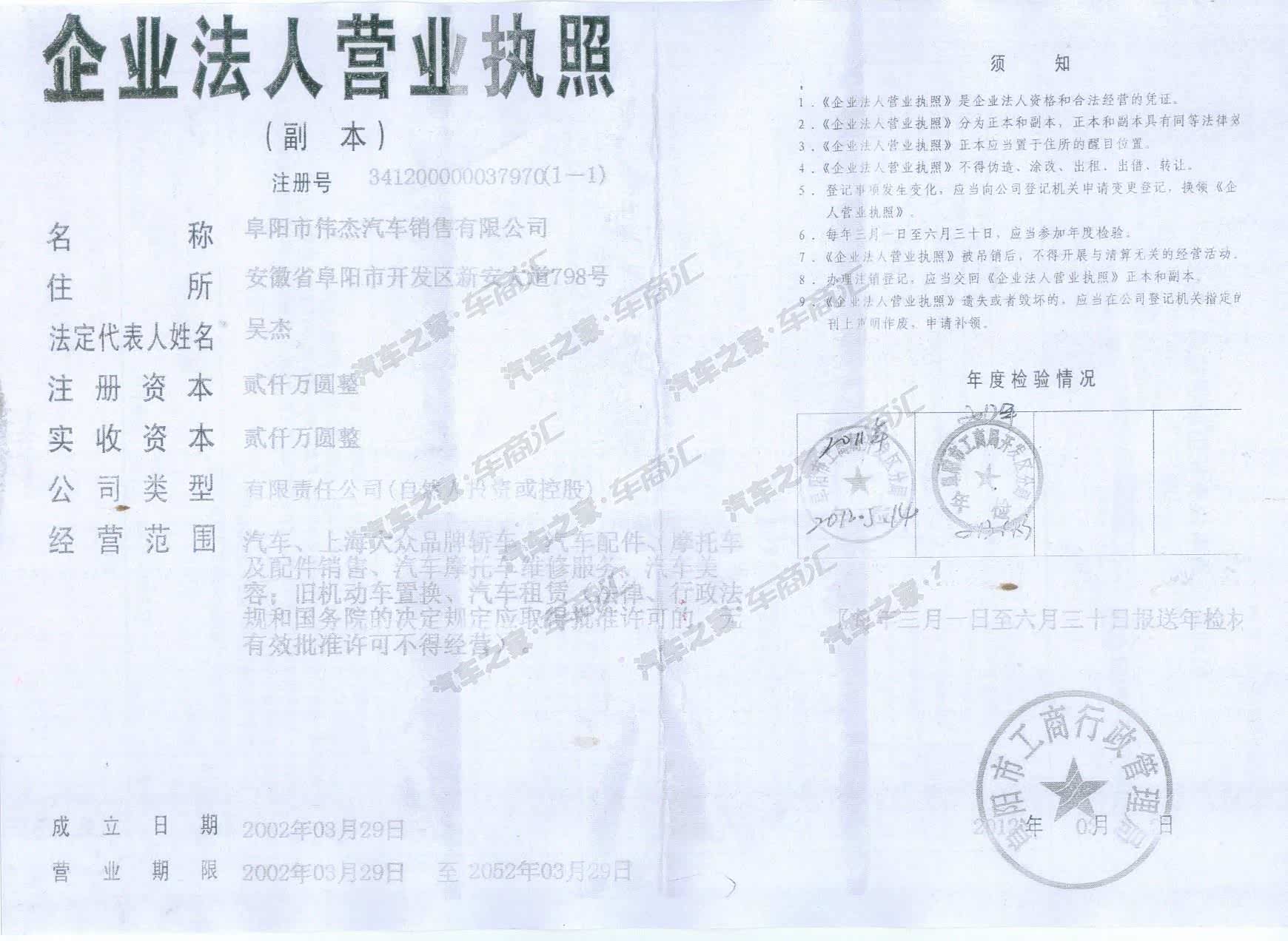 阜阳伟杰汽车销售有限公司