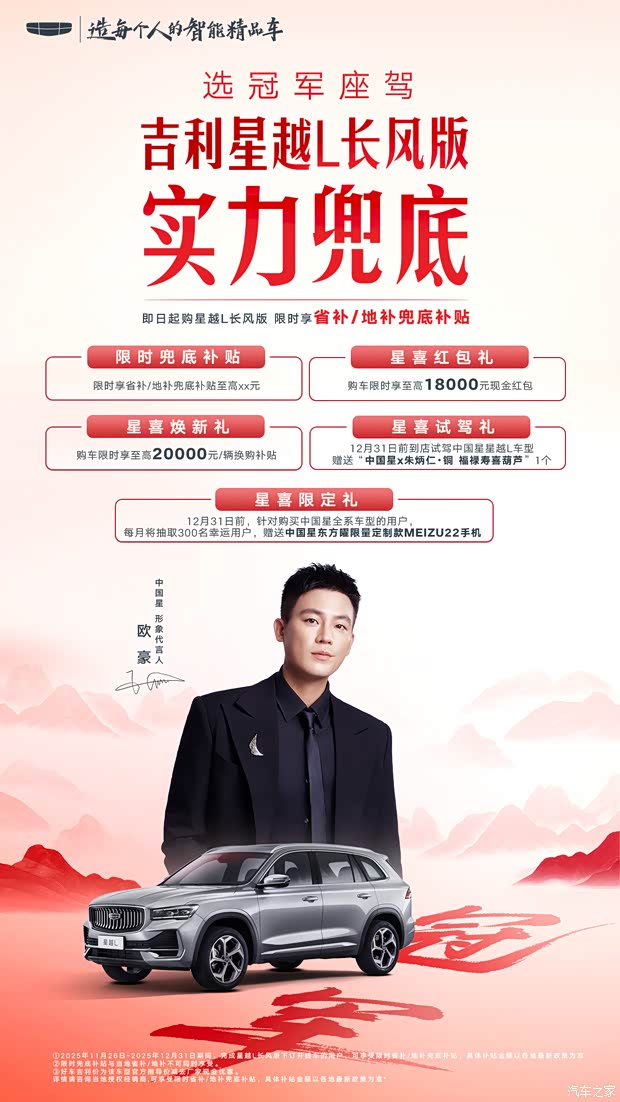 最近正在看车的朋友们注意了,如果您所在的地区省补/地补暂停了,也无需遗憾——吉利星越L长风版直接给“兜底补贴”!不仅如此,现在购车还可叠加享受至高18000元的星喜红包礼、至高20000元的星喜焕新礼等多重福利。机不可失,现在就是很好的入手时机!