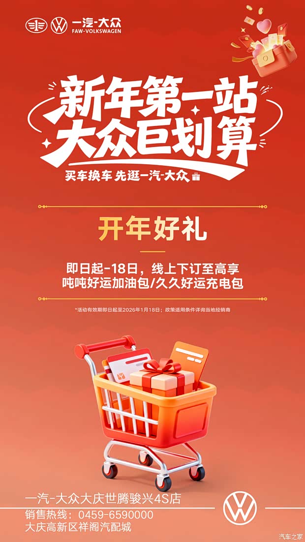 岁末迎新,福气驾到!一汽-大众「新年狂享 厂献礼遇」火爆开启!我们特备新年专属厂“家”大礼包,金融、置换政策拉满,助您轻松把德系好车开回家。现场不只谈车,更是一场好玩的新年派对:DIY手作、趣味游戏、全家福…带您全家沉浸式体验纯正德系品质与欢乐年味。快来展厅,一次性搞定您的“新年第一件大事”,把福气、运气和可靠座驾一起领走,过个领跑新年的团圆年!