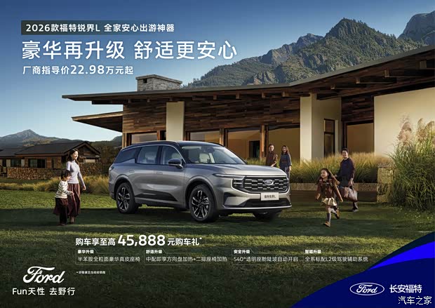 一直以来,福特锐界L不断倾听用户真实用车需求,致力于为中国家庭提供更舒适的驾乘体验。此次2026款福特锐界L上市焕新,带来了豪华、舒适、安全和智能四大升级,主力车型,加配不加价。