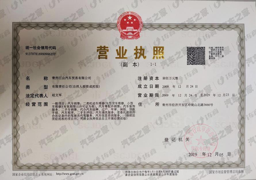 东风日产青州江山专营店是(青州江山汽车贸易有限公司)于2009年12月15成立,严格按照东风日产乘用车有限公司所采用的国际先进的“整车销售、售后服务、零配件供应及信息反馈”四位一体建成的4S专营店。专营店位于山东省青州市,占地面积万余平方米,注册资本柒佰万元人民币,目前共有五个部门:行政部、财务部、市场部、销售部和服务部,员工70余人。