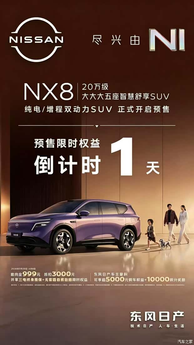 明日19点,与 NX8“共赴新程”! #东风日产NX8上市 直播倒计时 重新定义大五座 SUV,荣耀时刻将至 倒计时 1 天,一起见证传奇! 详情☎️0719-8580366 #东风日产十堰东贸轩威店