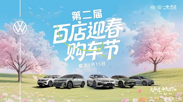 春风正好,福利不等人!一汽 - 大众中南区第二届百店迎春购车节以诚意政策致敬每一份热爱,活动至3 月 15 日截止,还有3天/2天/1天结束,所有补贴、福利到期即止。有
