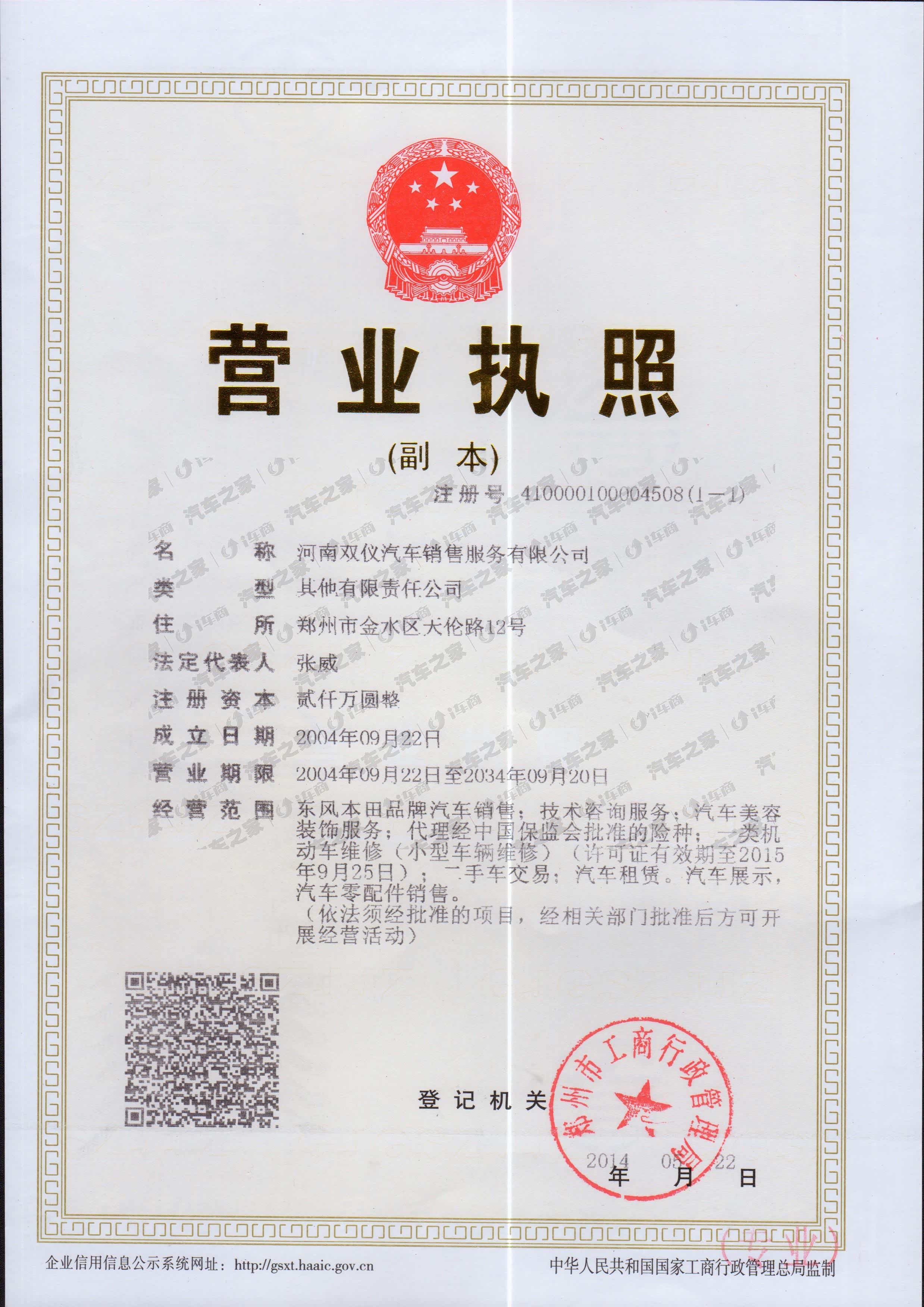 河南双仪汽车销售服务有限公司