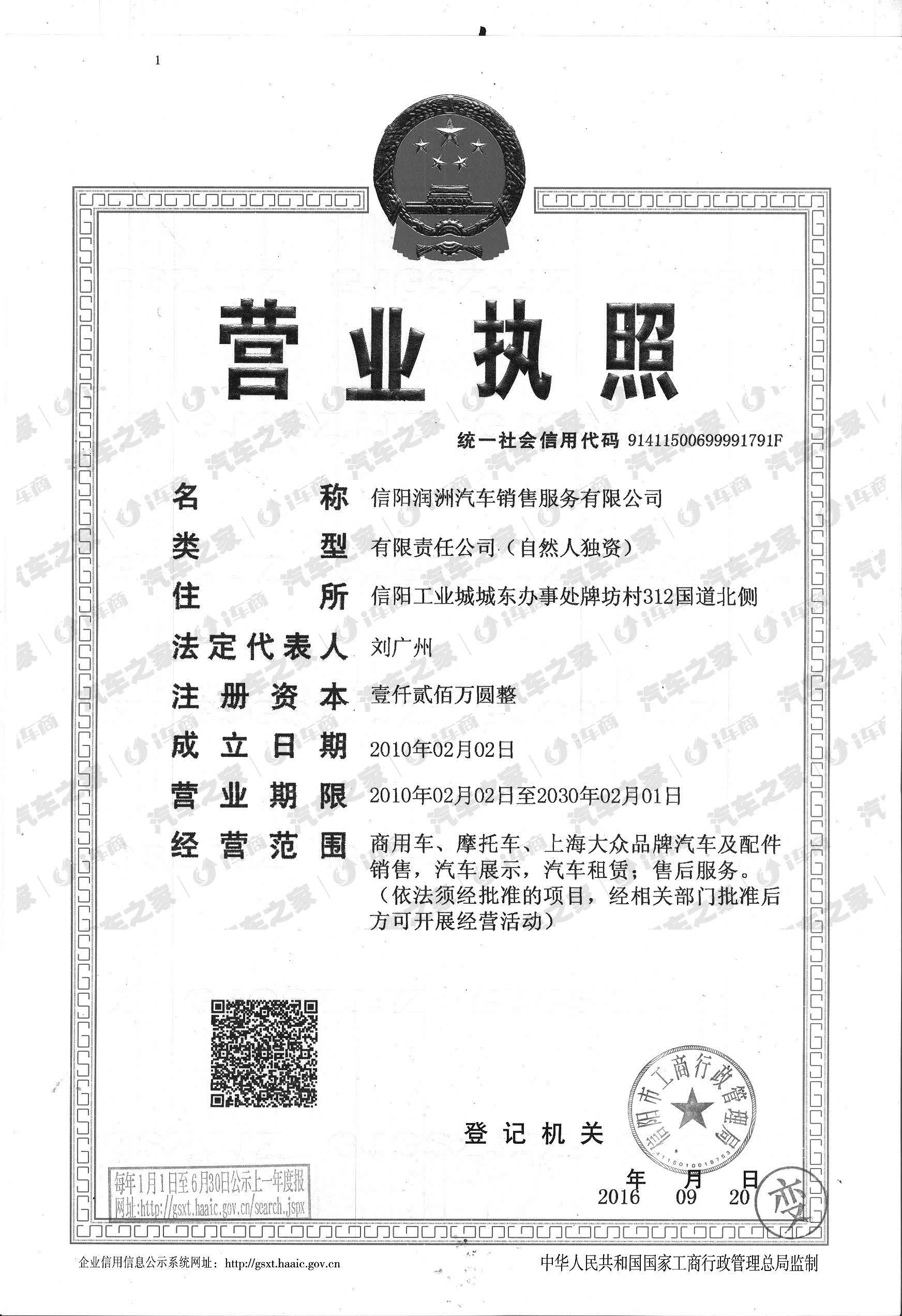 信阳润洲汽车销售有限公司