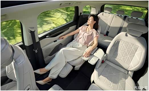 5米车长、近3米轴距,尺寸给足了底气。但真正让它在同级里脱颖而出的,是座椅布局的巧思——同级2-2-3和2-3-2两种座椅布局可选。特别推荐2-2-3版本,第二排两个独立头等舱座椅,带腿托、加热通风,一键舒躺模式下,41°靠背倾角配合50°腿托,形成近乎零重力的放松姿态。老人坐两三个小时的长途,下车腿不酸、腰不疼。中间200mm的中央通道,进出第三排不用翻座椅,成年人也能从容通过。满员七人时,每个人都能找到属于自己的舒适区。