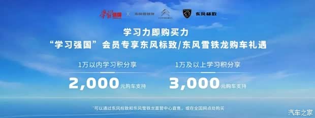 为此,东风雪铁龙、东风标致积极响应,正式启动“学习积分激励购车”活动,即日起,用户可根据学习积分情况,享受相应的购车优惠。并计划在3月20日基于“学习强国”学习积分生态的“积分优惠换券测算”智能购车系统将正式上线,届时,“学习强国”学习p台会员可享东风雪铁龙、东风标致专属购车礼遇,实现学习积分向购车优惠的直接转化,探索“学习赋能消费、服务直达民生”的创新模式。此次活动不仅丰富了“学习强国”学习p台的服务生态,更以数字化手段精准促进汽车消费,让惠民政策触手可及,推动每一次学习积累都能转化为美好出行的切实回馈。