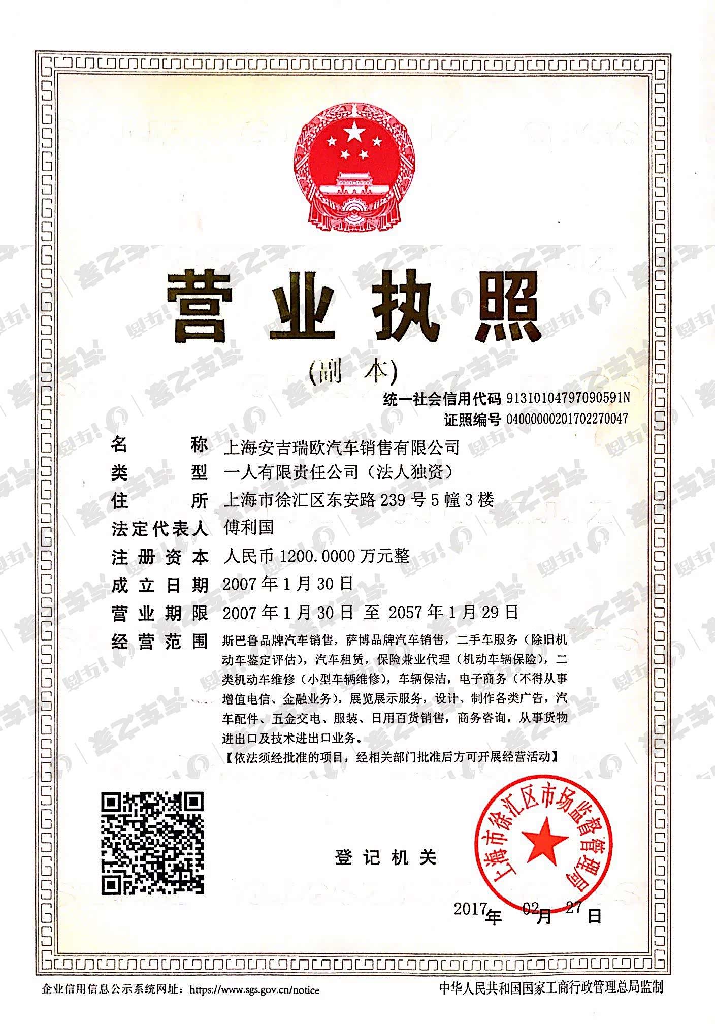 上海安吉瑞欧斯巴鲁