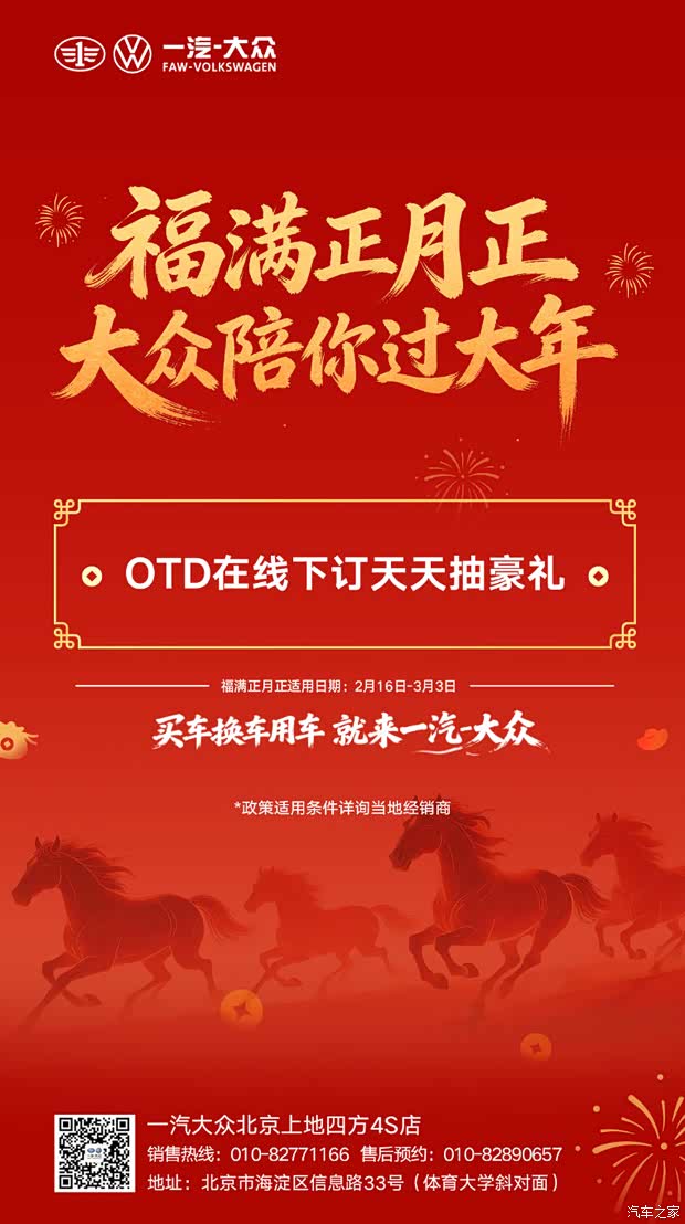 一汽-大众2月整合营销火热开启,以大众陪你过大年为主题,秉持买车换车用车 就来一汽-大众的沟通主张,携全系车型送上新春诚意礼遇。