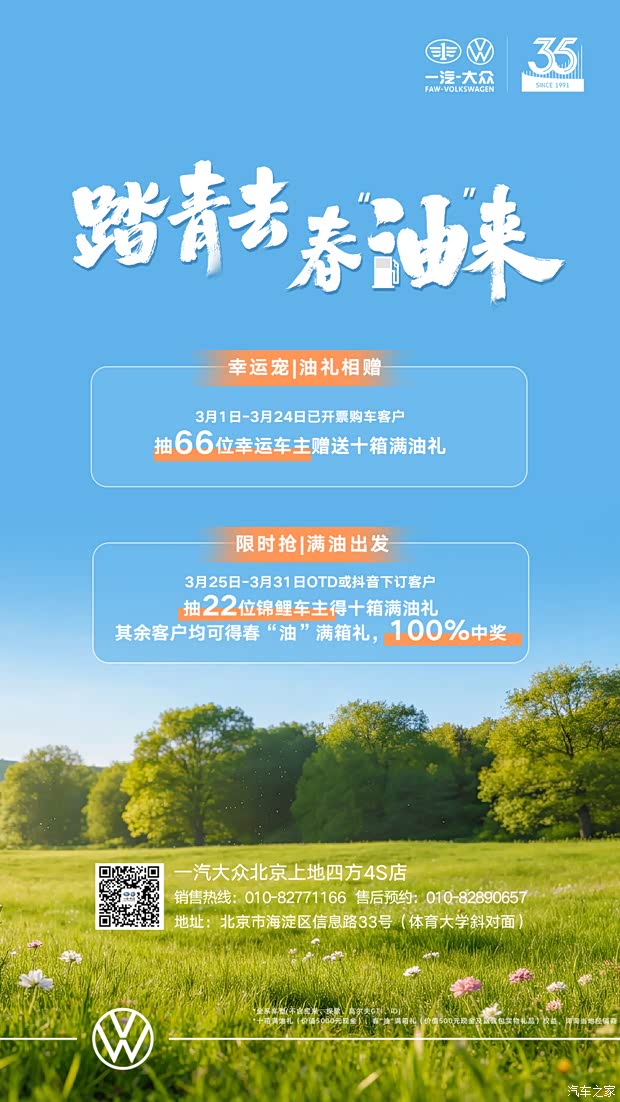 🧧即日起至3月31日下订,即享一汽-大众华北区春“油”限时补贴福利🧧