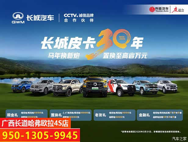 【买皮卡到广西长道哈弗五象店 送终身免费保养机油】