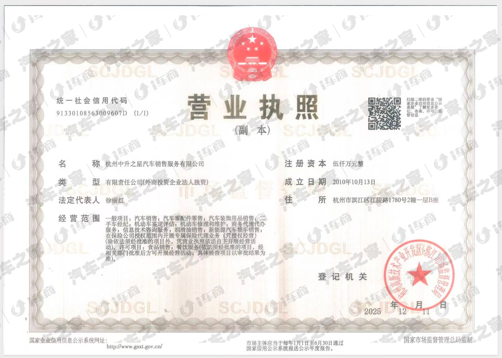 杭州中升之星汽车销售服务有限公司隶属于大连中升集团,是按照梅赛德斯-奔驰“星徽理念”标准兴建的奔驰授权经销商,专为奔驰客户提供“整车销售、售后服务、汽车零配件和信息反馈”为一体的销售及服务中心。地处杭州市滨江区江陵路1780号,位于江南大道三桥口和地铁1号线江陵路地铁站旁,是杭州市滨江新区的核心区域。地理位置优越,交通便利,配备了梅赛德斯-奔驰高标准的硬件设备及软件服务。