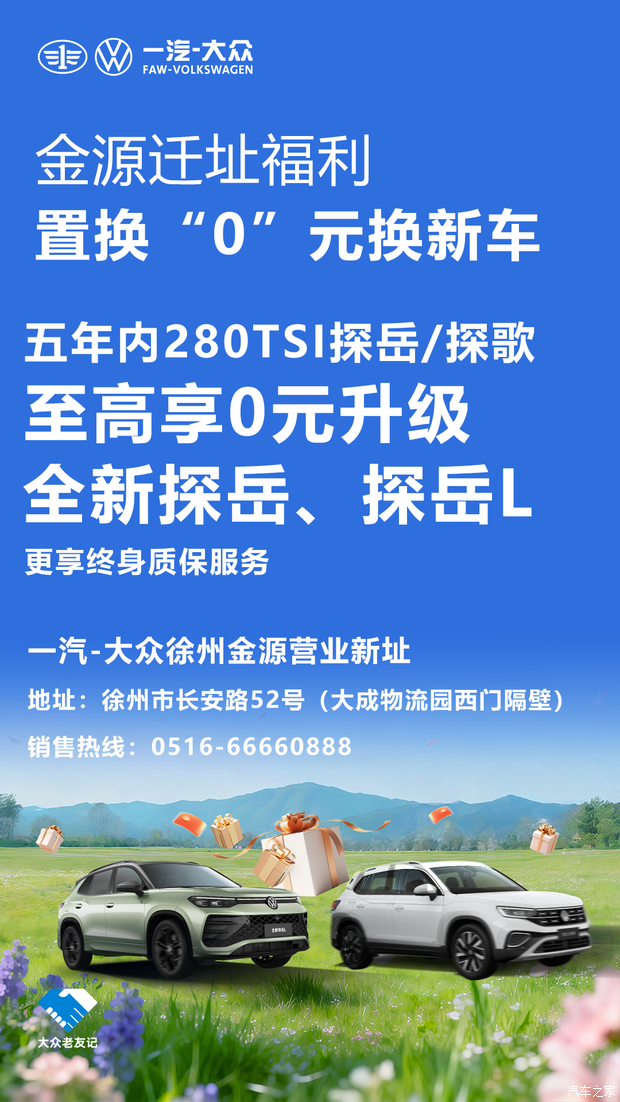 一汽-大众徐州金源迁址福利,限时开启!