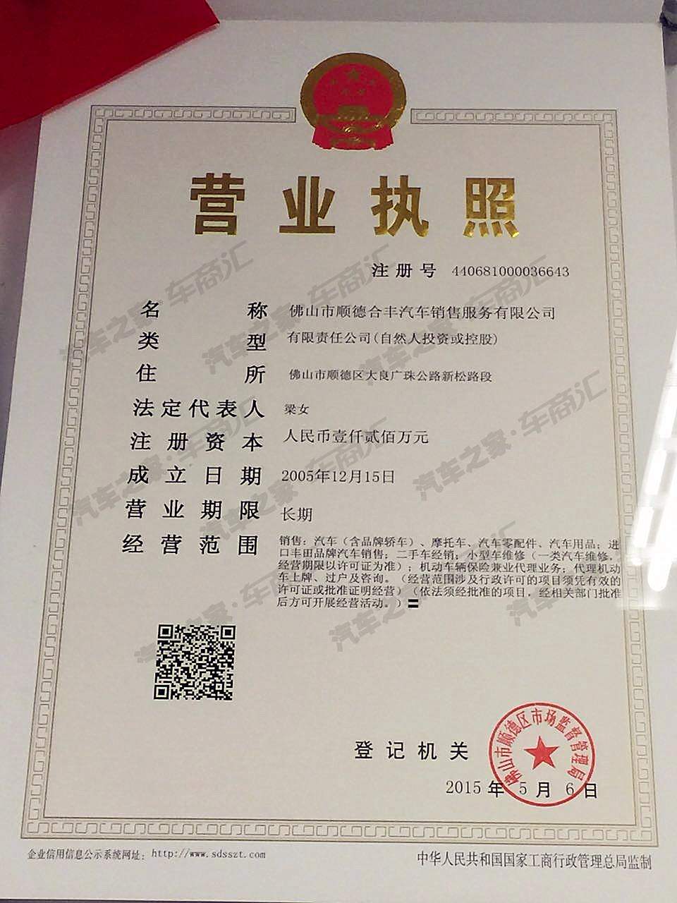 展厅地址:佛山市顺德区大良广珠公路新松路段105国道旁(合诚集团汽车城) “广汽丰田合丰大良店”全体工作人员将竭诚为您提供专业周到的购车用车服务!