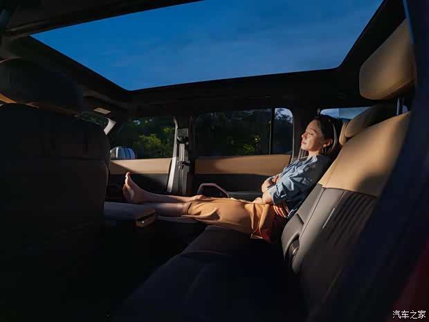 福特智趣烈马最令人称道的突破,在于它打造了行业首个真正的“户外安心恒温露营空间”。车辆配备了一键触发“成床模式”,第一、二排座椅可自动放平,头枕同步折叠,快速形成一个宽敞舒适的2m×1.4m超大卧床。与传统车型成床需清空后备箱不同,福特智趣烈马创新性地采用一、二排成床布局,完全不占用后备箱空间,行李无需搬出车外,哪怕突然下雨也可从容应对。更贴心的是,成床后B柱和C柱的空调出风口依然保持送风,特制床垫还不遮挡冰箱开口,真正实现了“躺下依旧恒温”,清凉或温暖始终相伴。