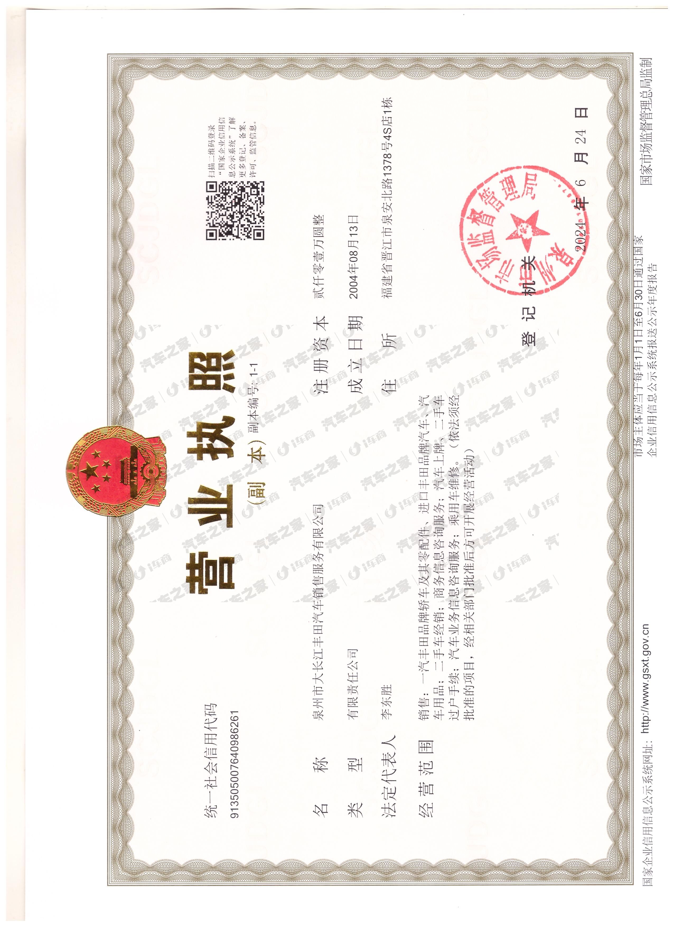 晋江市池店镇华洲村泉州大桥旁边泉州大长江丰田
