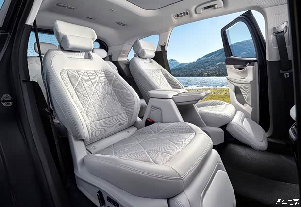 很多七座SUV,第三排就是个摆设,坐进去像蹲小板凳,大人憋屈孩子哭。锐界L不一样,它真的认真研究了“一家老小怎么坐”。5米车长、近3米轴距,尺寸摆在这。但更关键的是座椅布局——同级唯0一的2-2-3和2-3-2可选。更推荐2-2-3,二排两个独立头等舱座椅,带腿托、能加热通风,一键舒躺模式,41°靠背+50°腿托,近乎零重力。老人坐两个小时,下车腿不酸腰不疼。中间留了200mm的过道,进出第三排不用翻座椅,成年人轻松走过去。满载七人,谁也不憋屈。