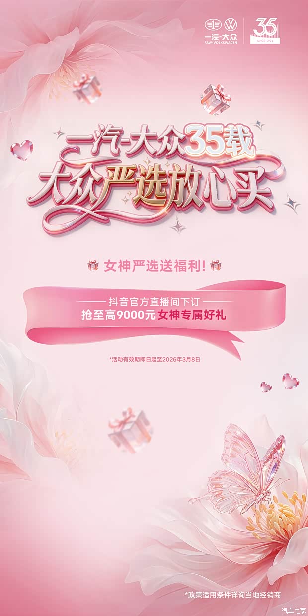 一汽大众超三专场来啦!懂女生的座驾,从来都是颜值与实力双在线 3月4日|超级星期三 悦享女神节,一汽大众专场试驾品鉴会,专为女神们量身打造!